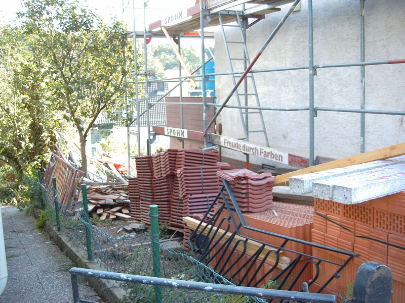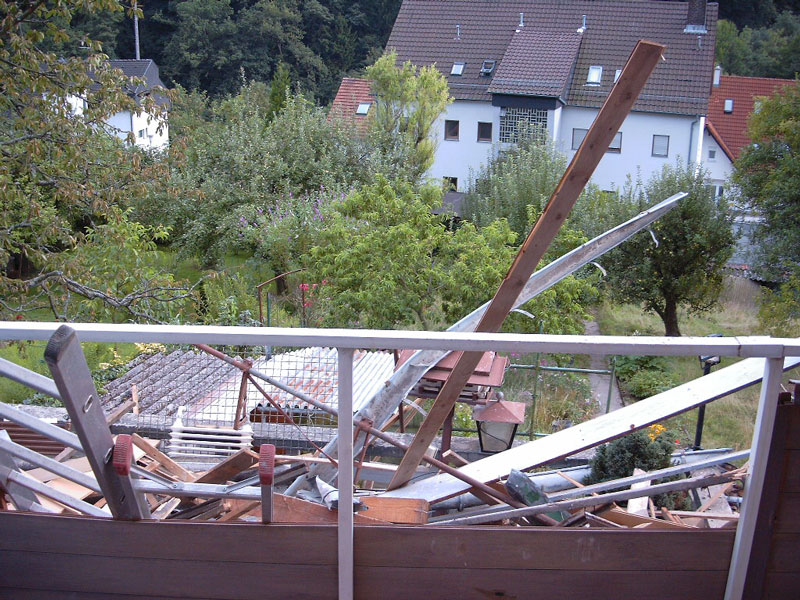 Erste Arbeiten am Dach mit